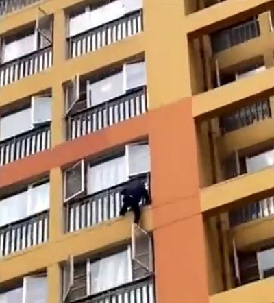 Vào ngày 17/12/2019 tại thành phố Ngô Châu, tỉnh Quảng Tây, Trung Quốc, bé trai 3 tuổi trong lúc chơi đùa không cẩn thận ngã từ tầng 8, may sao rơi đến tầng 6 thì bị mắc kẹt. Ông nội bé mặc kệ nguy hiểm trèo xuống cứu bé nhưng không may cả hai đều bị kẹt.