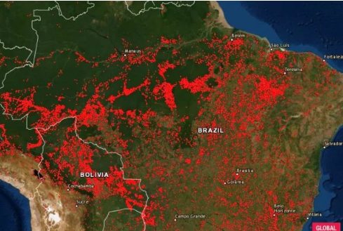 Kể từ ngày 15/8, đã có hơn 9500 trận cháy rừng xảy ra khắp đất nước Brazil, hầu hết đều ở lưu vực Amazon. Phạm vi của những trận cháy lớn đến mức có thể nhìn thấy được từ vệ tinh.