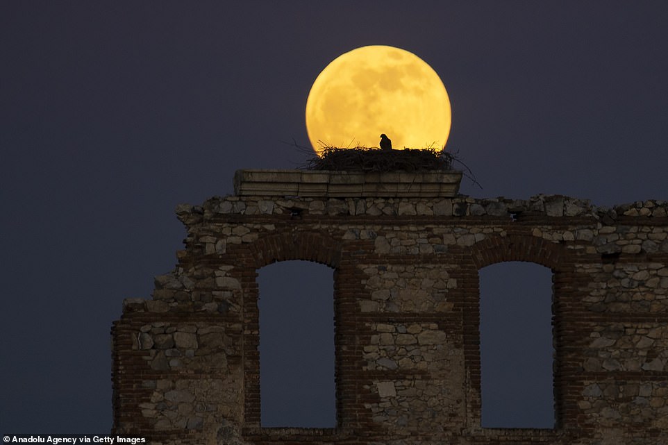Trăng tròn sáng rực trên đỉnh bức tường bệnh viện quân đội ở Edirne, Thổ Nhĩ Kỳ. Trăng tròn tiếp theo, còn được gọi là Trăng tuyết, sẽ có vào ngày 9/2 tới.