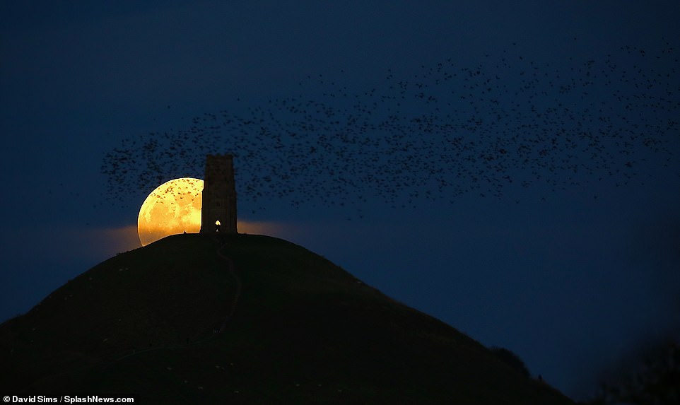 Trăng tròn tháng giêng mọc trên bầu trời đồi Glastonbury Tor, Anh. Tất cả 4 lần nguyệt thực tiếp theo của năm 2020 sẽ lần lượt xảy ra vào các tháng 6,7,11.