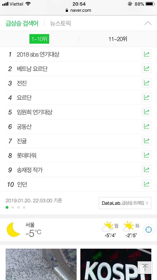 Trận đối đầu đầy kịch tính giữa đội tuyển Việt Nam và Jordan không chỉ thu hút với người hâm mộ nước nhà, mà còn gây chú ý một số quốc gia khác, trong đó có cả Hàn Quốc. Bằng chứng là “Việt Nam - Jordan” đã đứng thứ hai từ khóa được tìm kiếm nhiều nhất tại cổng thông tin lớn nhất tại xứ sở kim chi.