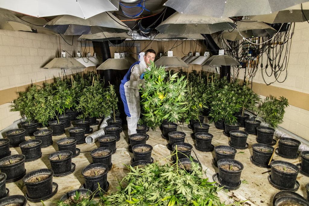 Bên trong một căn hầm trồng cần sa ở Wiltshire, Anh. Ảnh: Guardian.
