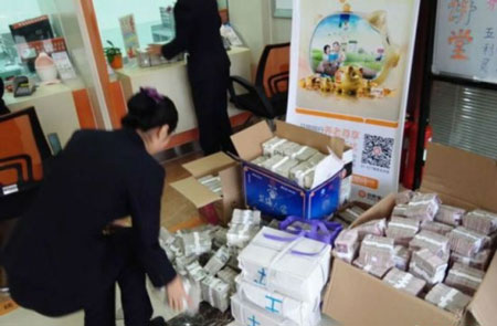 Nhìn cả ô tô tiền lẻ gồm toàn những đồng xu 1 NDT, tiền mệnh giá 0,5 và 1 NDT, lãnh đạo công ty vội vã cầu cứu ngân hàng giúp kiểm tiền. Hai nhân viên ngân hàng được cử đến và ngồi đếm ròng rã suốt cả ngày mới chỉ kiểm được 40.000 NDT. Họ dự tính để đếm hết số tiền mua nhà của vị khách cần tới 9 ngày nữa.