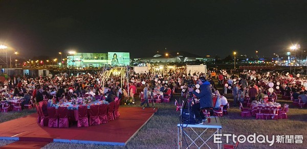 Bữa tiệc buổi tối được tổ chức tại một mảnh đất cạnh Hội đồng thành phố Cao Hùng. Có hơn 120 chỗ ngồi và khung cảnh cực kỳ hoành tráng, không chỉ có flycam để quay, hôn lễ còn có cả đài truyền hình đến ghi lại toàn bộ quá trình buổi tiệc. Bữa tiệc quy tụ rất nhiều nghệ sĩ cùng diễn viên, khiến khách mởi không khỏi trầm trồ rằng bữa tiệc này giống như một buổi hòa nhạc vậy.