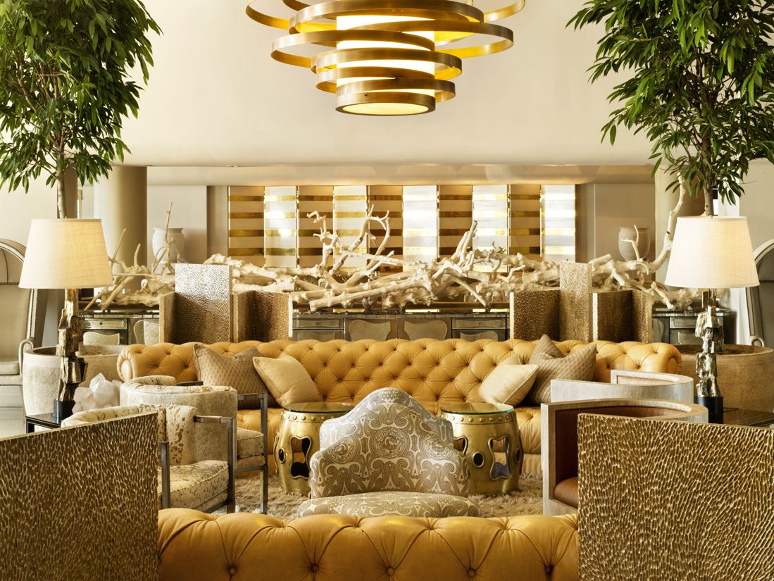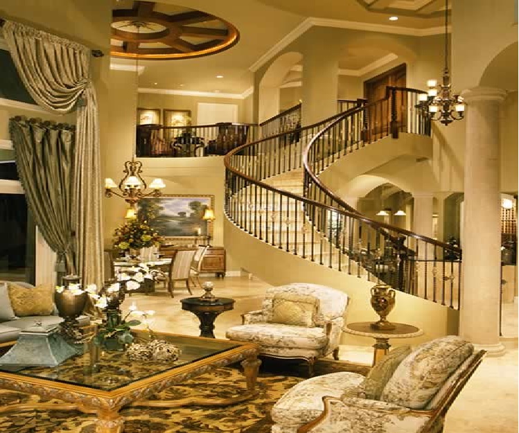 Thiết kế theo nhiều kiểu kiến trúc, những đồ đạc làm từ pha lê, đá cẩm thạch, ngọc trai,… được bày bố trang trí quanh dinh thự.