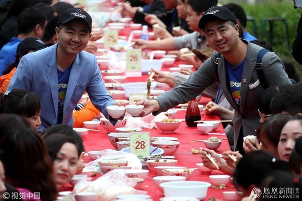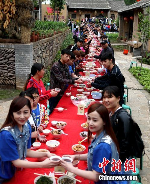 Chiếc bàn tiệc được thiết kế và sắp xếp theo hình con rồng màu đỏ, nối dài hàng kilomet.