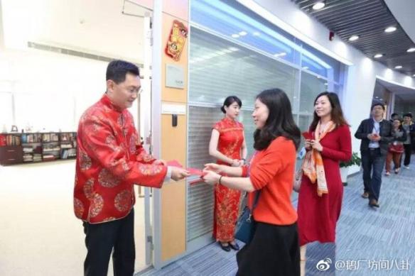 Ông Pony Ma phát lì xì cho nhân viên vào ngày đi làm đầu tiên của năm mới 23/2, tức mồng 8 tháng giêng.