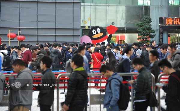 Mới 8h sáng nhưng trước cửa công ty đã chật ních người. Được biết, có người đã đứng xếp hàng từ 2h sáng để chờ nhận lì xì từ tay vị chủ tịch Pony Ma.