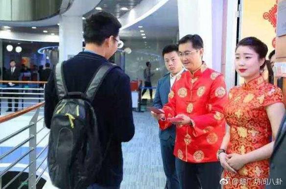 Ông Pony Ma đang phát lì xì cho nhân viên.