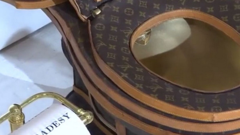 Đối với những người luôn thích sự sang trọng hay xa xỉ, chiếc bồn cầu màu vàng được bao phủ bởi vải túi Louis Vuitton này có thể đáp ứng được yêu cầu đó.