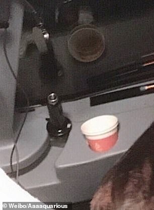 Còn chụp luôn cốc giấy trong buồng lái để “sống ảo”.