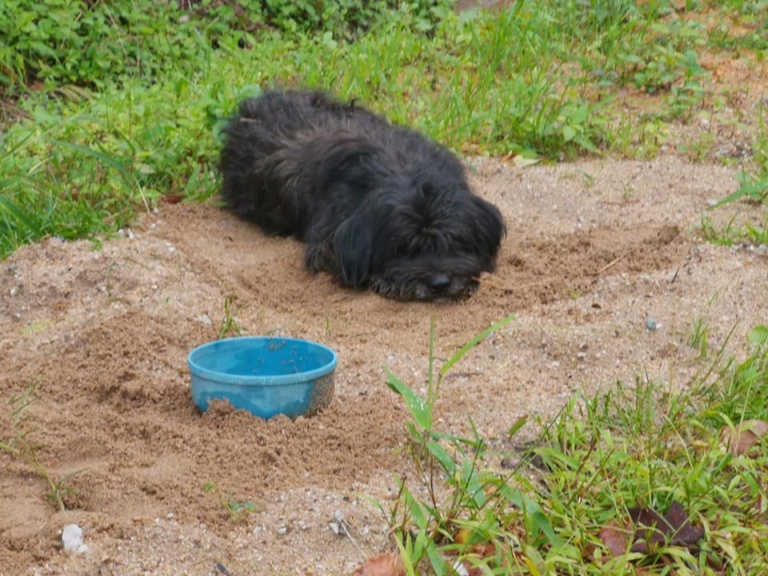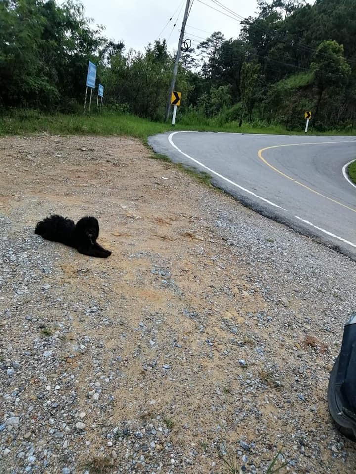 Vào một ngày nọ, anh Panithan Rattanathum đã phát hiện ra một chú chó đen đáng yêu nằm bên lề của ngọn núi Doi Ang Khang, thành phố Chiang Mai (Thái Lan). Khi được tìm thấy, chú chó trông rất tội nghiệp, nằm buồn bã như đang đợi một ai đó.