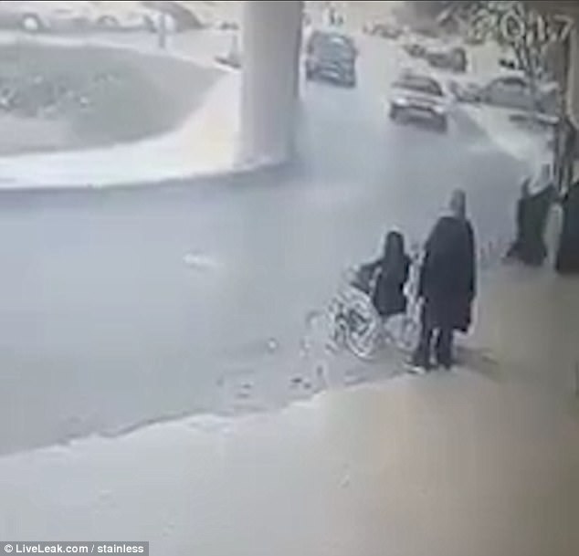 Sự việc kinh hoàng này xảy ra tại cửa chính của một bệnh viện ở thủ đô Amman, Jordan, một quốc gia Trung Đông. Khi đang ngồi trên xe lăn trước cửa bệnh viện để chờ người nhà đến đón, người phụ nữ xấu số đã bị một chiếc ôtô, không biết từ đâu đến, đâm vào người. Vụ va chạm khiến cô bị hất tung khỏi xe, nằm bất động trên vỉa hè.