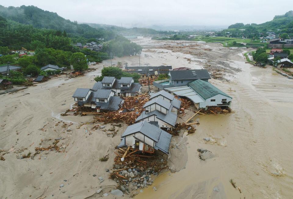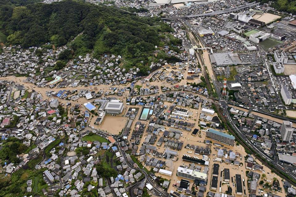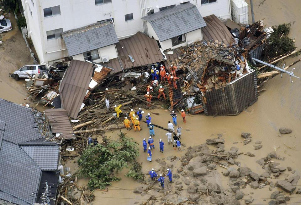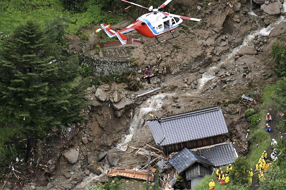 Theo Japan Times, hơn 60 người chết và hàng chục người vẫn còn mất tích do hứng chịu đợt mưa lịch sử gây ra lũ lụt nặng nề, lở đất kèm theo gió mạnh.