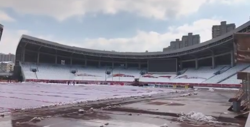Trước đó, để đảm bảo trận đấu được diễn ra bình thường, sáng ngày 26/1, dưới sự lãnh đạo của các Ban quản lý Sân vận động, một đội khoảng 300 người đã có mặt tại sân vận động để thu gom tuyết. Dù bắt đầu công việc từ sáng sớm và thời tiết vẫn rất lạnh, nhưng tất cả nhân viên đều làm việc rất tích cực.