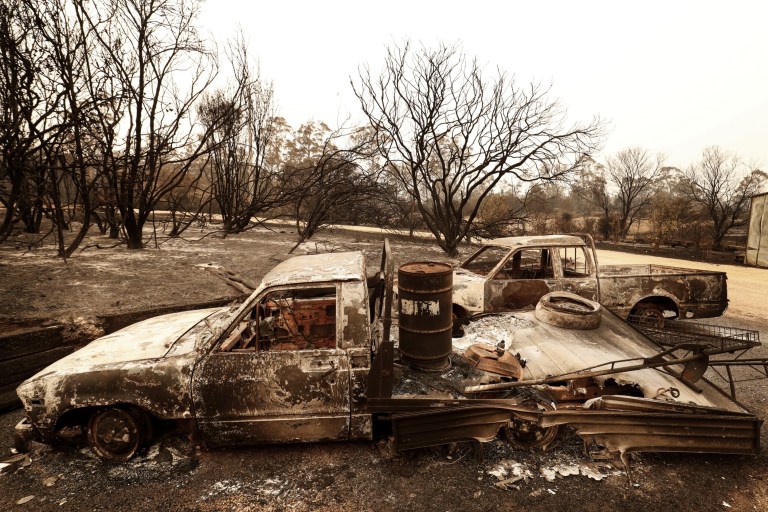 Khung cảnh đổ nát sau một đám cháy ở bờ biển phía đông Australia.