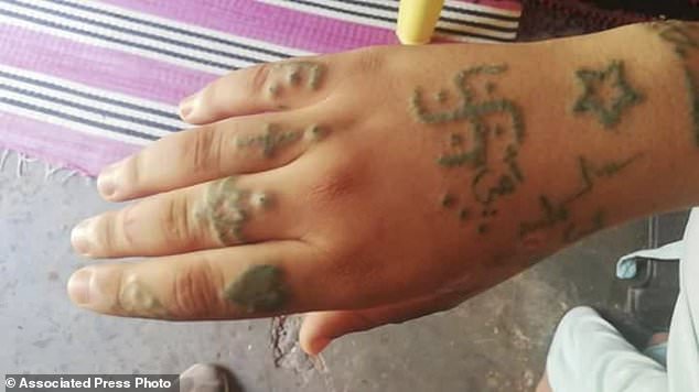 Hình xăm trên chân của Khadija trong khi cô bị giữ hai tháng.