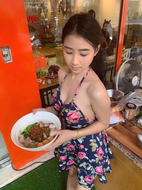 Xinh đẹp, quyến rũ là thế, hotgirl bán mỳ này lại còn thường xuyên diện những bộ đồ vô cùng táo bạo, để lộ những đường cong cơ thể, “đốt mắt” người đối diện. Có vẻ trang phục không phù hợp lắm với hoàn cảnh và công việc nhưng không thể phủ nhận rằng cô gái rất nóng bỏng.