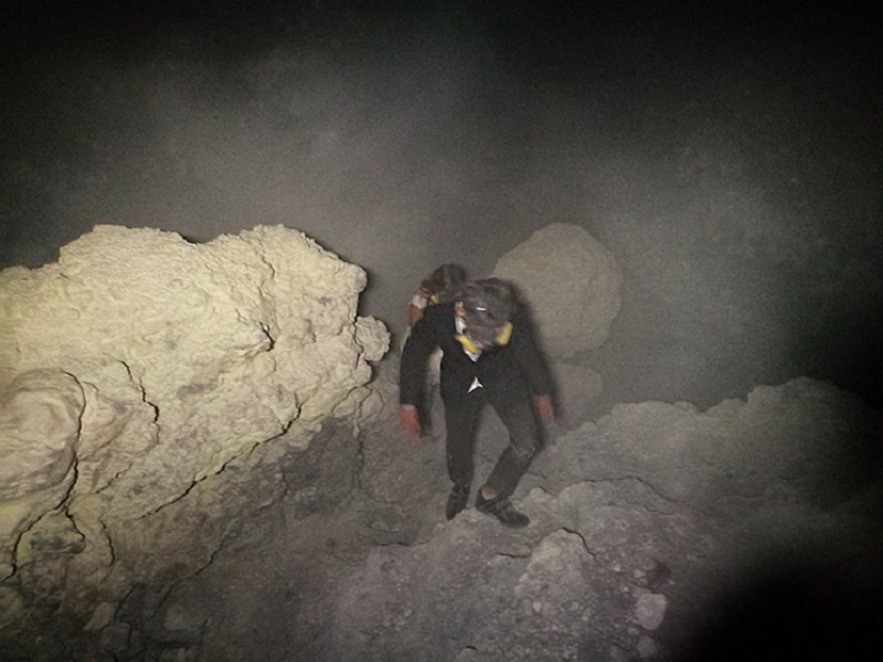 Ngọn lửa màu xanh phát ra từ miệng núi lửa có tính axit cao và cực kì nóng. Trong quá trình chụp hình, rất may mắn vì không ai trong ekip bị thương.