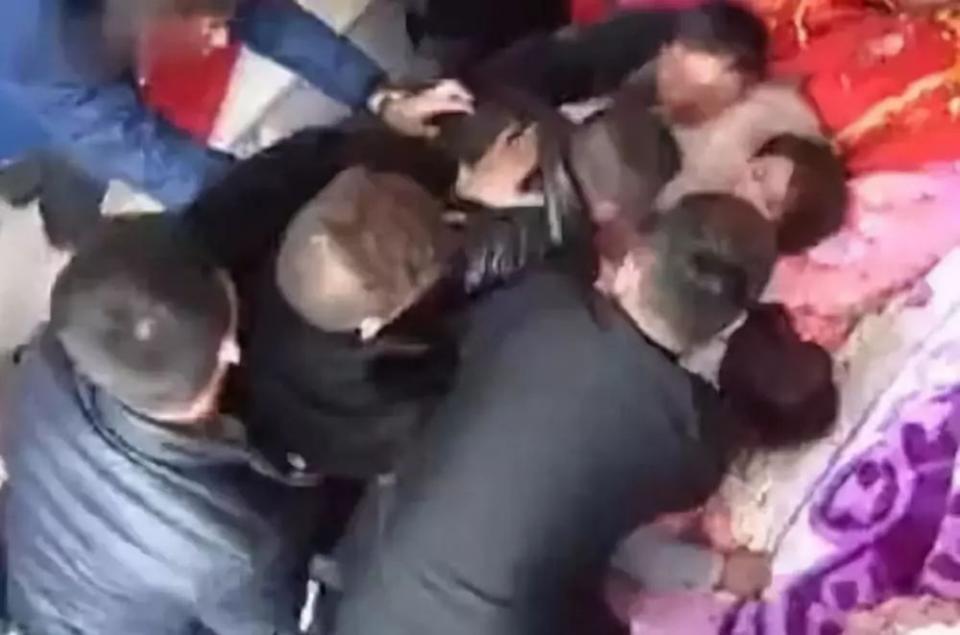 Cô dâu bị đám khách nam đè lên người, lột váy cưới và cưỡng hôn.