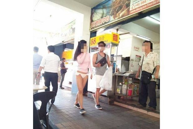 Hình chụp nữ du khách thản nhiên đi bộ giữa nơi đông người khi đang mặc quần lót.