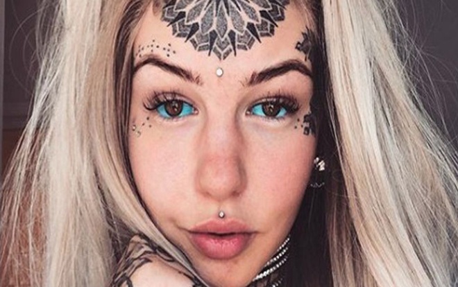 Amber Luke, 23 tuổi, đã dành hơn 6.000 bảng Anh (hơn 180 triệu đồng) để có nhiều hình xăm độc đáo trên cơ thể cùng chiếc lưỡi xẻ làm đôi và kéo dái tai. Amber cho biết, cô nghiện những hình xăm từ khi 16 tuổi và trong vòng 7 năm qua, cô có hơn 50 hình xăm trên người. Trong đó, đáng kể nhất là xăm tròng mắt thành màu xanh.