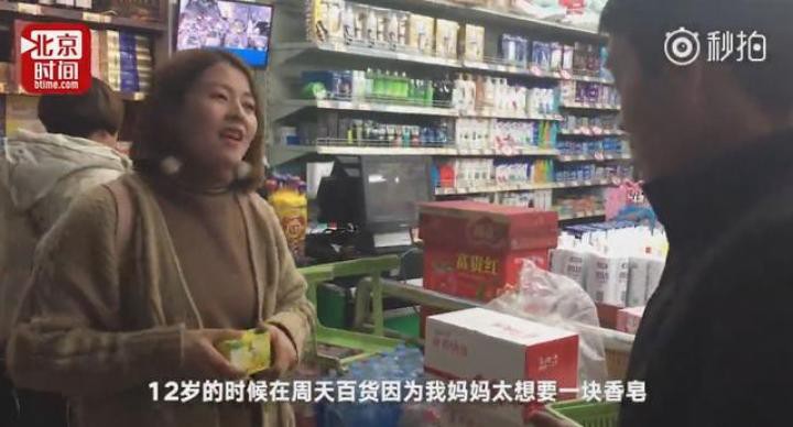Video được trang mạng xã hội Btime.com đăng tải cho thấy, Qu đã giải thích với nhân viên siêu thị về hành động lấy trộm một bánh xà phòng mùi đu đủ mà mẹ cô rất thích nhưng không đủ tiền mua cách đây 18 năm.