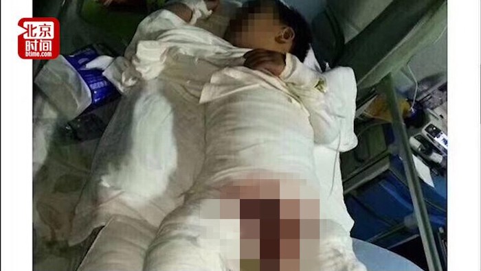 Bé trai bị bỏng nặng đang được điều trị ở bệnh viện. Ảnh: Shanghaiist