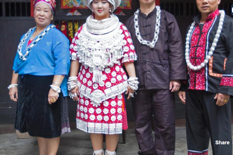 Tiếp nối truyền thống địa phương, khi kết hôn, Guanghui Wu mang trên mình tới 10kg trang sức bạc, từ mũ đội đầu và áo choàng vai. Wu giải thích “Tất cả các cô gái đều phải có một bộ đồ bạc để lập gia đình”.