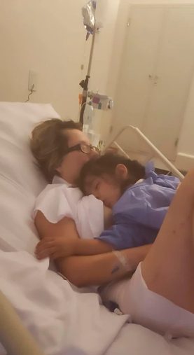 Hai mẹ con ôm chặt lấy nhau trong phòng bệnh.