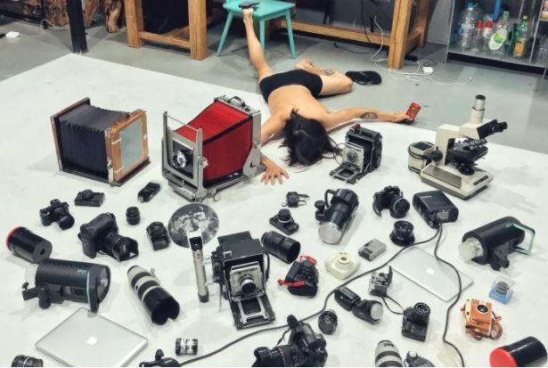 Nam thanh niên “ngã sấp mặt” xung quanh hàng chục chiếc máy ảnh đắt tiền. Ảnh: The Sun