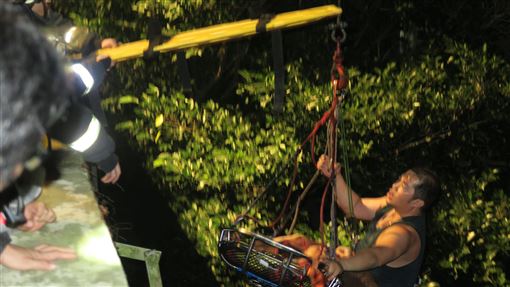 Lính cứu hỏa trèo xuống cầu giải cứu bà Đỗ.