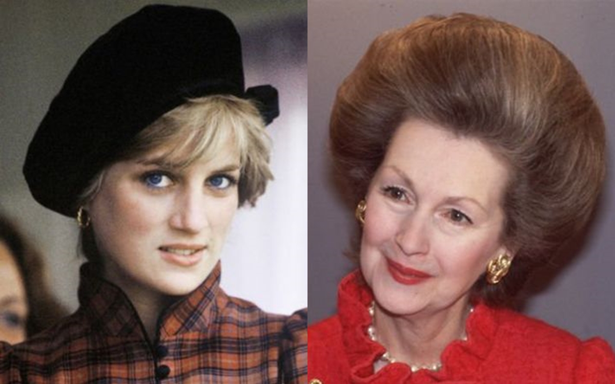 Cố Công nương Diana (trái) và mẹ kế là bà Raine Spencer (phải) từng có mối quan hệ không mấy tốt đẹp khi còn sống chung với gia đình.