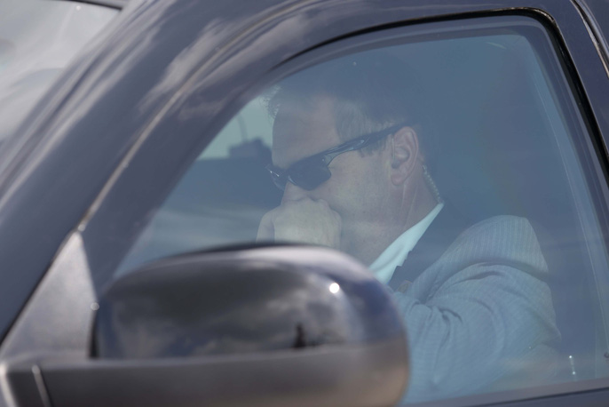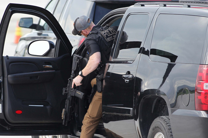 Mật vụ Mỹ nổi bật với cặp kính đen bóng và súng lăm lăm trong tay.