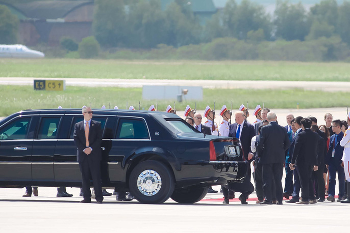 Nhân viên Mật vụ Mỹ làm nhiệm vụ khi tổng thống Mỹ Donald Trump bước vào “Quái thú” Cadillac One