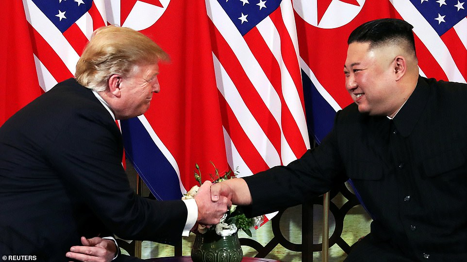 Tổng thống Mỹ Donald Trump và nhà lãnh đạo Triều Tiên Kim Jong-un đã dành cho nhau cái bắt tay thân mật khi gặp nhau tại khách sạn Metropole, Hà Nội vào tối 27/2. Ảnh: FoxNews
