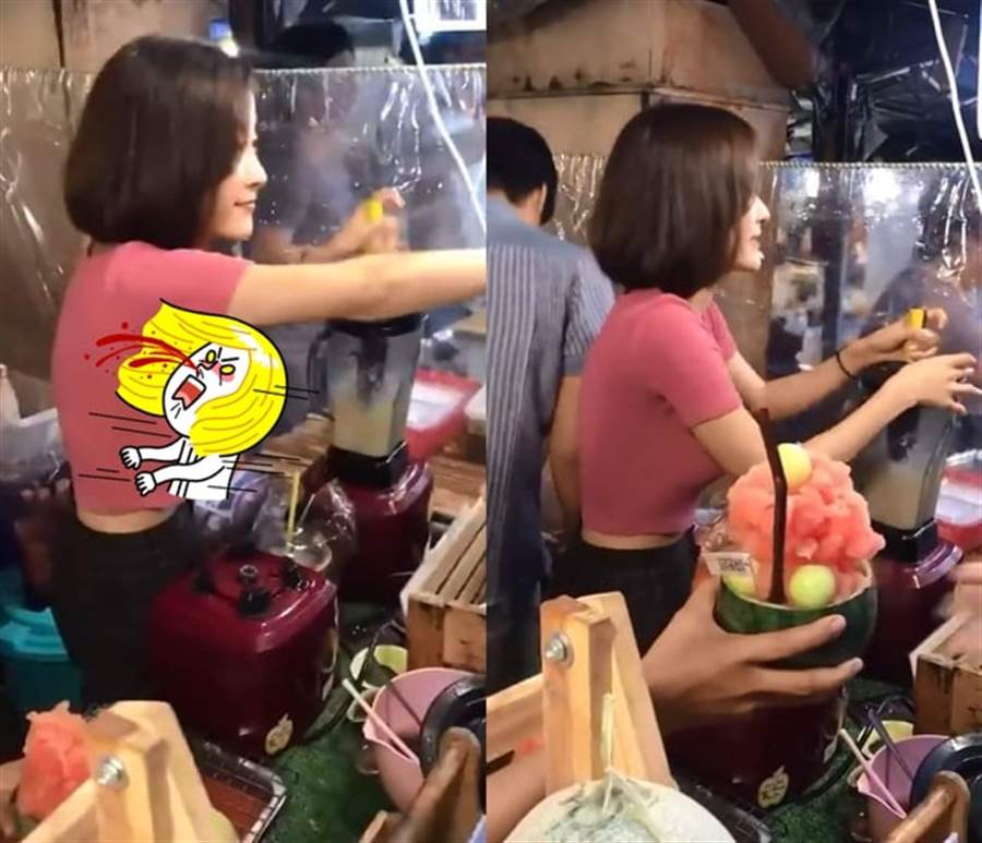 Cô mặc một chiếc áo bó sát, tôn lên những đường cong cơ thể càng khiến người ta phải chú ý. Khách hàng ngoại quốc tụ tập xung quanh vừa thưởng thức nước hoa quả, vừa không ngừng dùng điện thoại chụp hình cô gái.