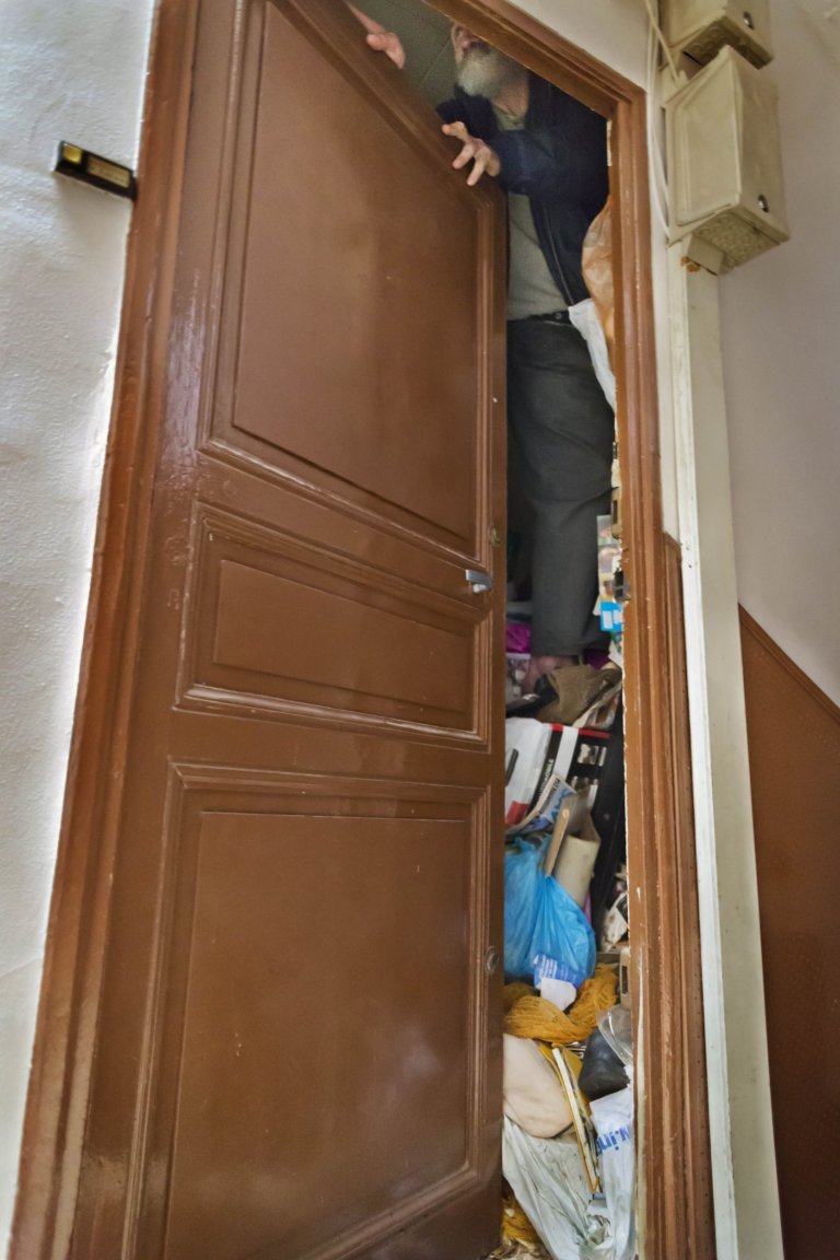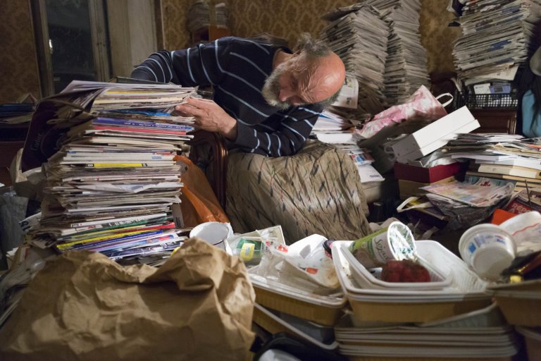 Jean bị bao vây bởi rác thải cao từ sàn đến trần nhà, bao gồm cả đồ ăn đã thối rữa, sách báo và đống quần áo cũ.