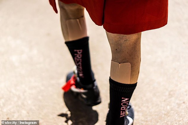 Những miến dán đau cơ vẫn còn nguyên trên chân của ông cụ, cho thấy những bức ảnh là hoàn toàn chân thực. Ảnh: Instagram