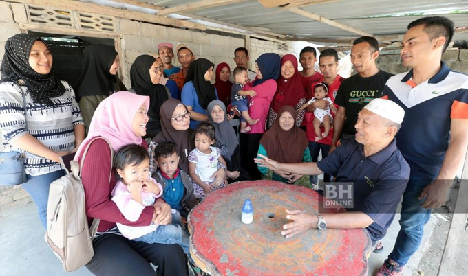 Ông Che Soh bên cạnh những người vợ và đàn con cháu của mình.