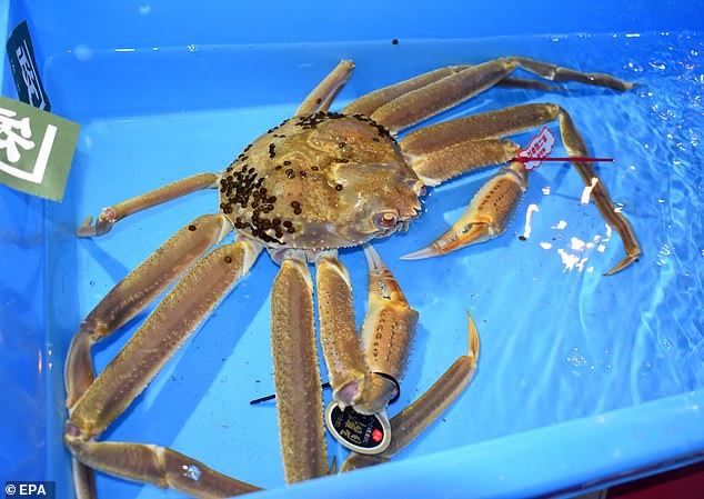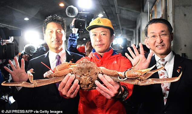 Con cua, được các chuyên gia xếp hạng “5 ngôi sao sáng nhất” được bán cho một nhà hàng ở khu mua sắm ở Tokyo.