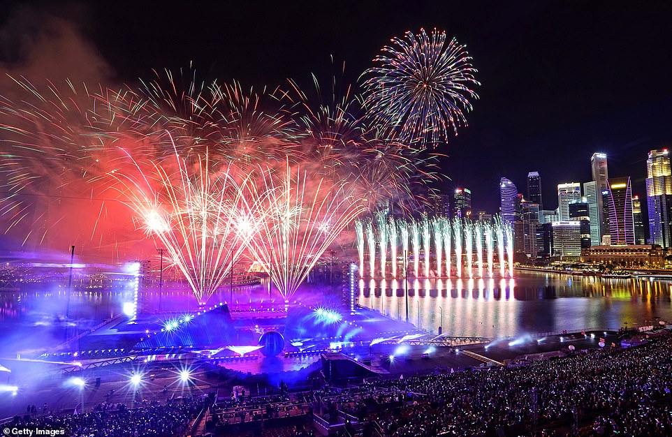 Mãn nhãn trước màn pháo hoa tại vịnh Marina ở Singapore.