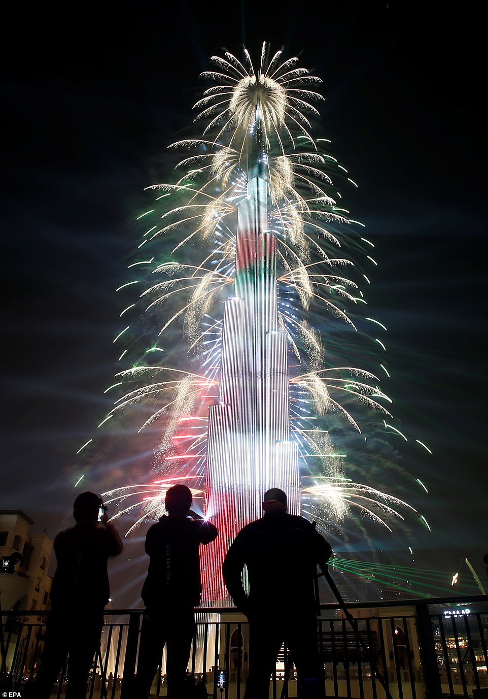 Bữa tiệc pháo hoa hoành tráng tại Burj Khalifa, tòa nhà cao nhất thế giới ở Dubai.