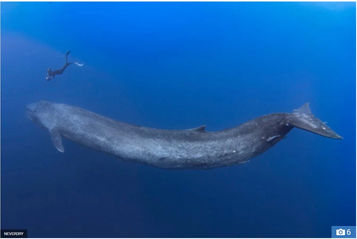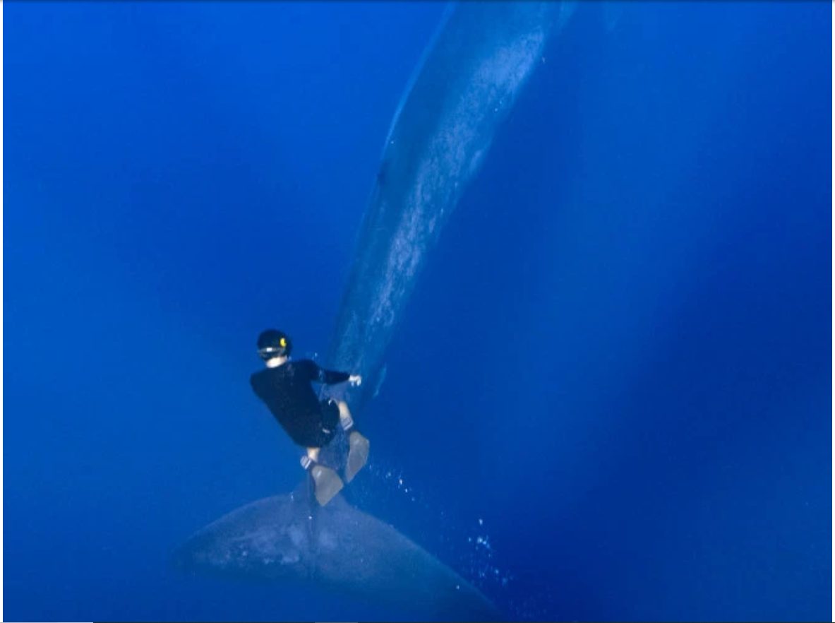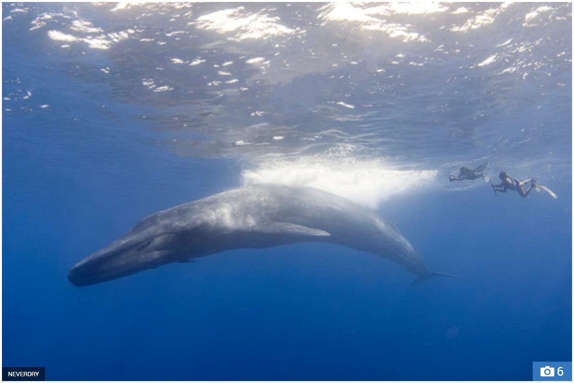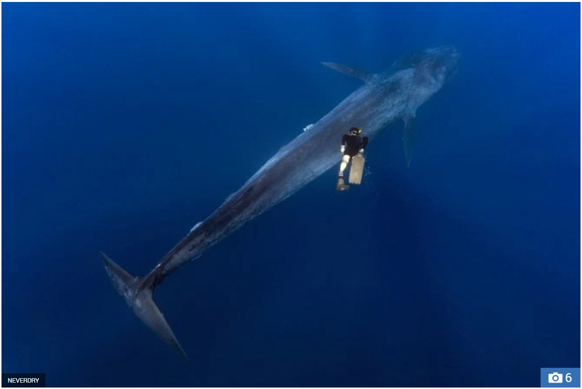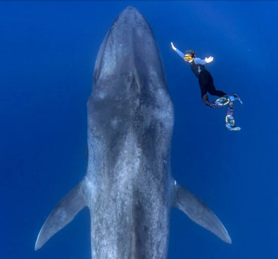 Người thợ lặn trông vô cùng nhỏ bé so với chú cá voi xanh.