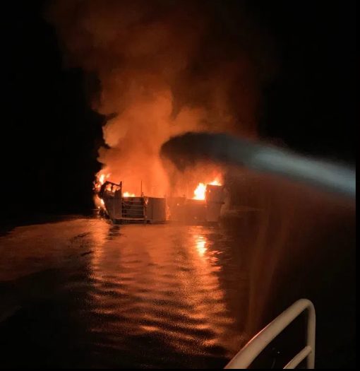 Một cuộc gọi cấp cứu đã được phát đi vào lúc 3h14 phút sáng 2/9 (theo giờ địa phương) khi tàu du lịch Mỹ bốc cháy cách đảo Santa Cruz thuộc bang California khoảng 18m. “Tình trạng khẩn cấp? Tàu Conception ư?“, sĩ quan tuần duyên hỏi.