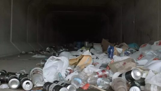 Lối vào đường hầm có vẻ rộng và cao ráo, nằm ngay bên dưới một đường cao tốc nhộn nhịp, nhìn ra phía sau là cả một sòng bạc đồ sộ 40 tầng, ánh đèn nhấp nháy sáng rực không ngớt. Thế nhưng, mới xuống sâu thêm vài mét, ai cũng phải sốc với sự thay đổi quá bất ngờ: không gian ẩm ướt, tối tăm, nền đất trải đầy mảnh thủy tinh lởm chởm, chai lọ chứa nước tiểu và đệm nằm bị mọt gặm tơi tả nằm trên các thùng nhựa McDonald cũ.