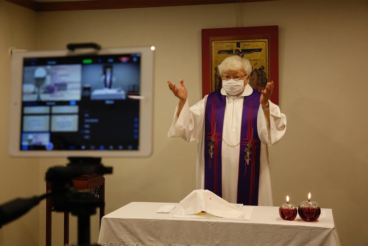 Mục sư Thomas Law Kwok Fai cử hành thánh lễ qua livestream.