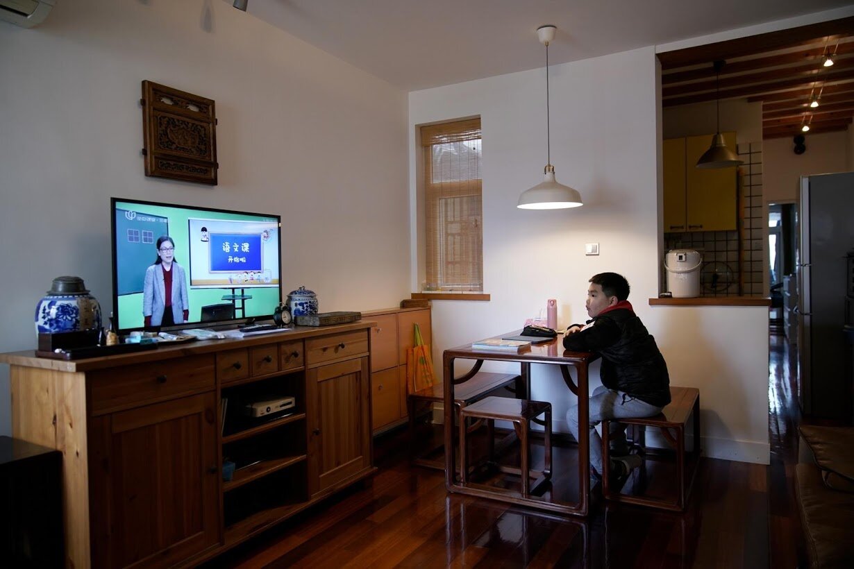 Cậu học trò Sha Jie ngồi bên bàn bếp trong căn hộ rộng 70 m², chăm chú dõi theo một chương trình dạy học trên TV. Bé trai 10 tuổi đang sống cùng bố mẹ và bà nội ở thành phố Thượng Hải (Trung Quốc). Từ ngày cả nước áp dụng lệnh phong tỏa để chống dịch, phạm vi hoạt động của cậu học sinh tiểu học gói gọn lại trong khu phố nhà mình.