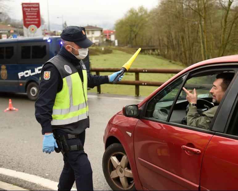 Cảnh sát từ chối người nhập cảnh ở biên giới Tây Ban Nha - Pháp trong lúc Tây Ban Nha đang áp dụng lệnh cấm nghiêm ngặt, ngăn chặn sự lây lan của virus.