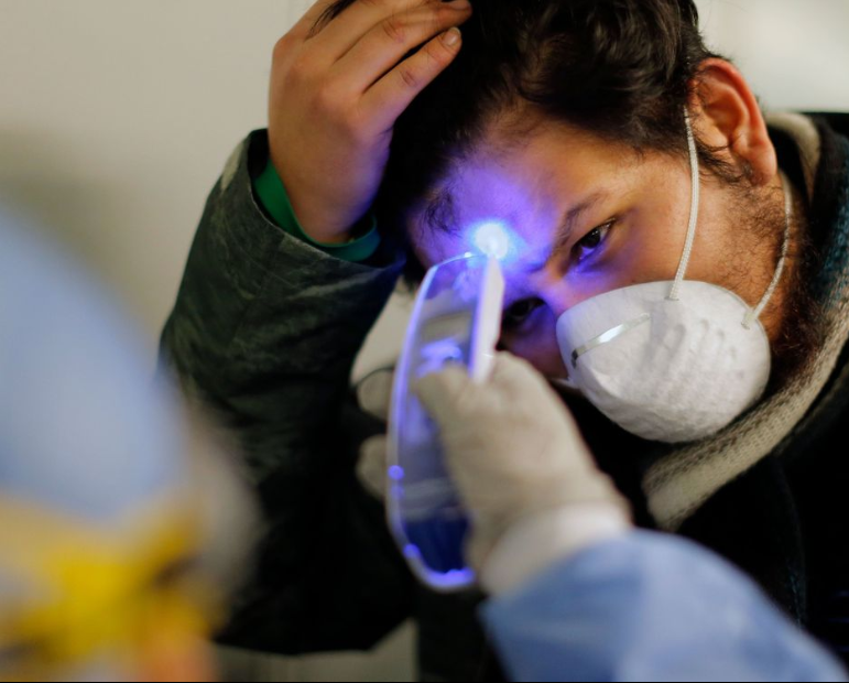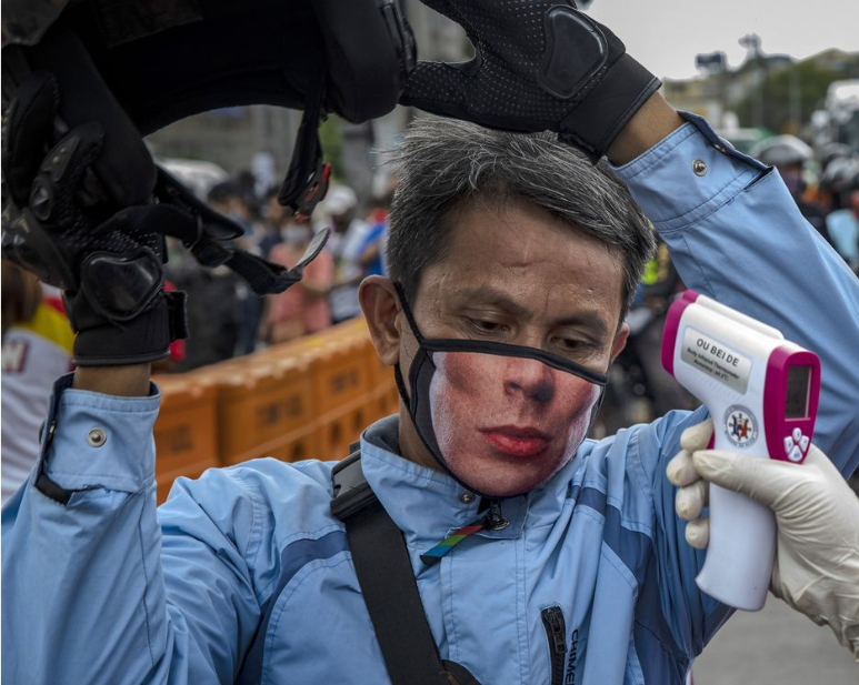 Một tài xế được đo thân nhiệt tại trạm kiểm dịch ở thành phố Valenzuela, Metro Manila, Philippines.